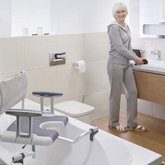 - Erleichtert den Transfer in die Wanne durch die Drehfunktion