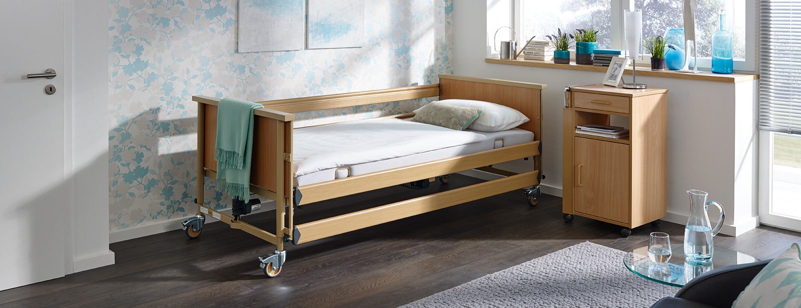 Das Pflegebett Royal überzeugt schon auf den ersten Blick mit einer hohen Wohnlichkeit. Verdeckte Doppellaufrollen und hohe Holzumbauten verbergen elegant die innovative Technik des Bettes. Ein zusätzlicher Pluspunkt ist das ausgezeichnete Preis-Leistungs-Verhältnis. Das Royal eignet sich für anspruchsvolle Privatkunden ebenso wie für niveauvolle Pflegeeinrichtungen.