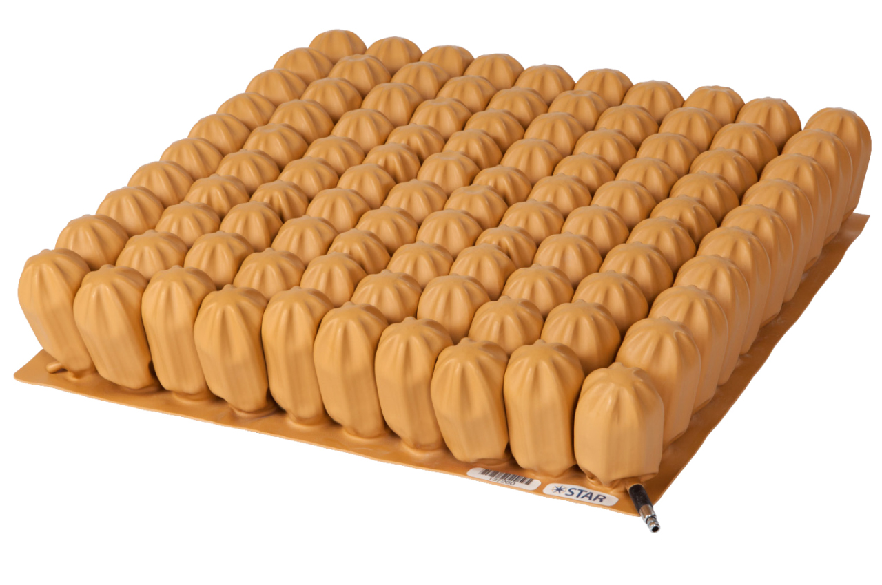 Das Anti-Dekubitus-Kissen Star Standard Air bietet den bewährten Hautschutz eines Luftzellenkissens. Die miteinander verbundenen Luftzellen lassen das Gesäß in das Kissen einsinken und verteilen so den Druck gleichmäßig über die gesamte Sitzfläche. Es entsteht ein perfekter anatomischen Abdruck des Gesäßes, der sich bei jeder Änderung der Sitzposition neu an den Benutzer anpasst.